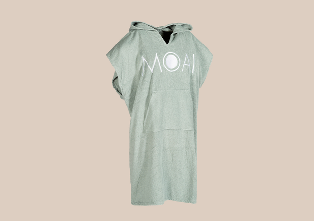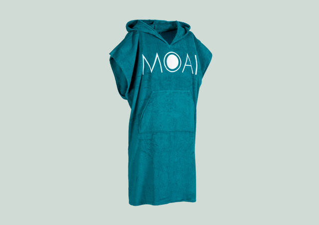 Weicher mintgrüner oder petrolfarbener Poncho im MOAI-Design aus 100% hochwertiger Baumwolle. Er ist der perfekte Umkleideponcho für den Strand & nicht nur. Das An- und Ausziehen deines Neoprenanzugs/Schwimmanzugs an öffentlichen Orten war noch nie so einfach wie mit diesem schönen, bequemen MOAI Design Poncho. Dieses Produkt hat eine praktische Tasche auf der Vorderseite und eine Kapuze auf der Rückseite. Erhältlich in Petrolblau, Softgrau und einer Kinderversion in leuchtendem MOAI-Orange. Eine Größe passt allen.
